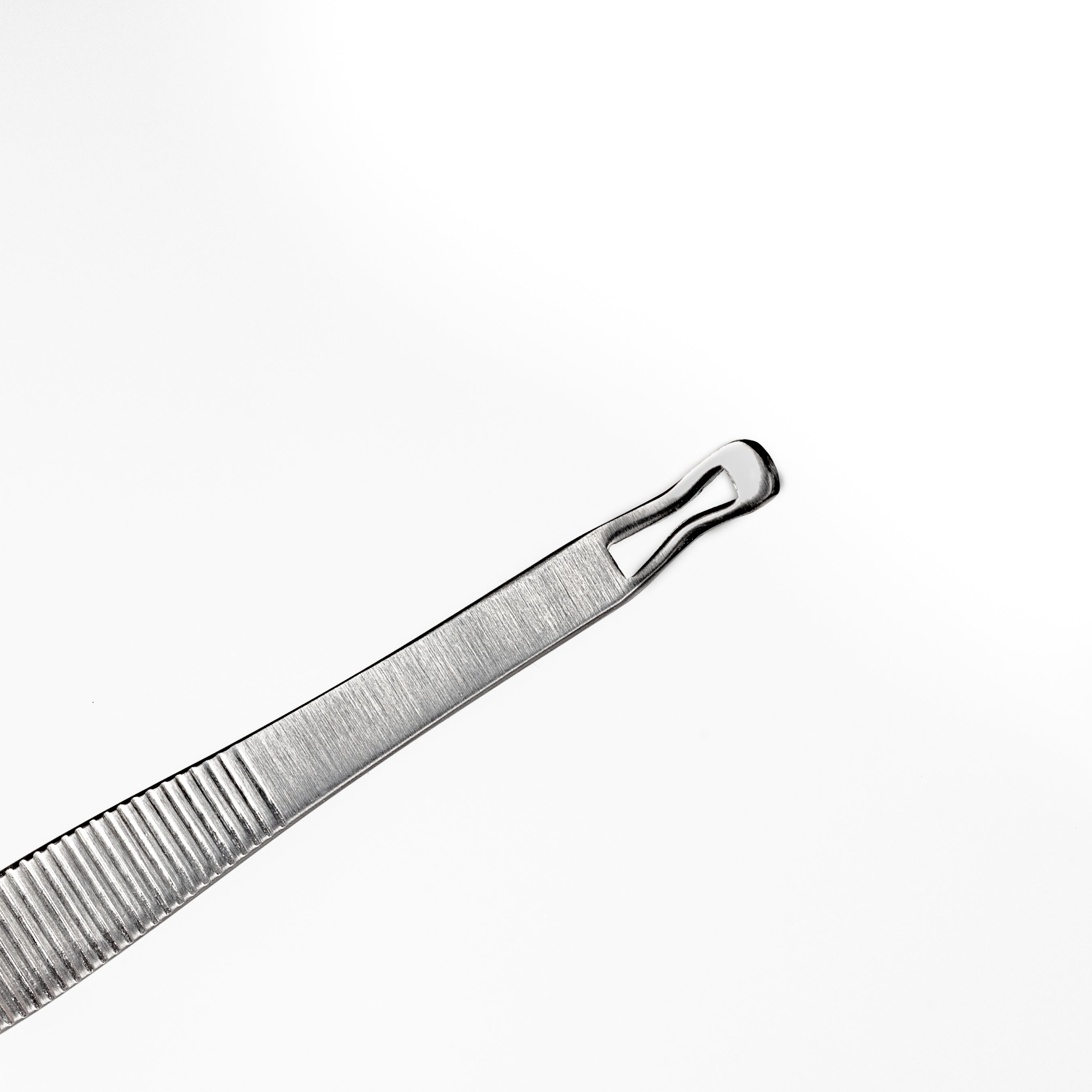 One side thin angled loop for gently roll out white heads and a flat side to press out blackheads.