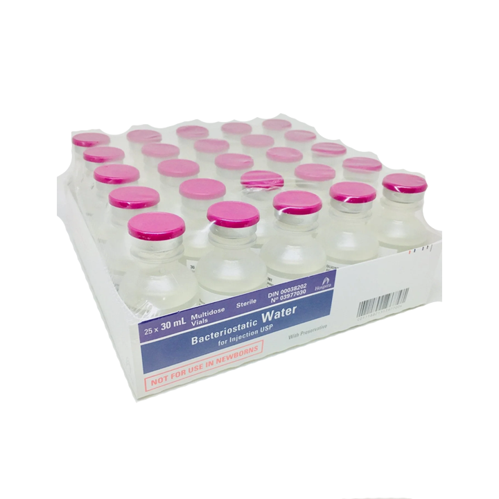 Flacon d’eau stérile 30 ml avec conservateur bactériostatique pour injection USP, 25/boîte