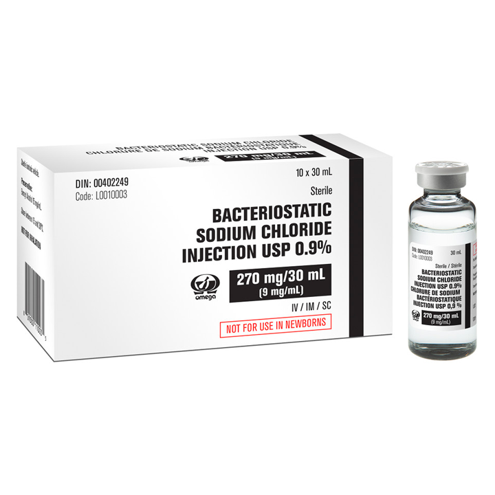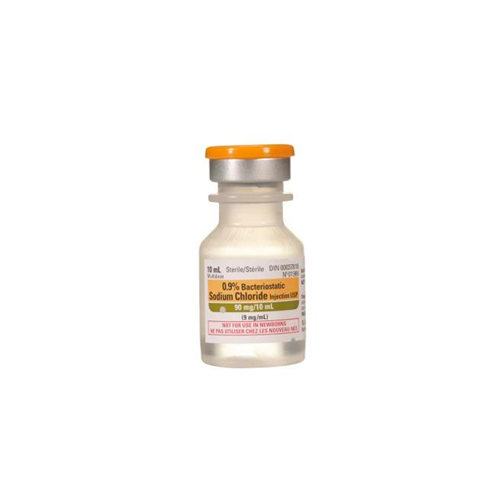 Flacons d’eau bactériostatique 0,9 % chlorure de sodium pour injection, avec conservateur – 10 ml, 25 unités/boîte